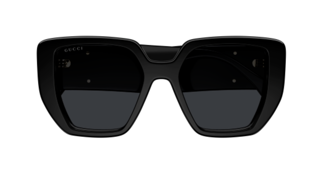Pared-back simplicity characterises the essential shapes, lines and colours of this concept, for a cool and on-trend mood. Inspired by a gender fluid look, translated in a street style effortless look. Oversize gemetric shape in plastic chacacterized by bold volumes and strong personality. Gucci running logo embellishes the bold temples. The style is available with black front and contrasting ivory and green mother of pearl colored temples. Colorful lenses give the style a feminine touch.